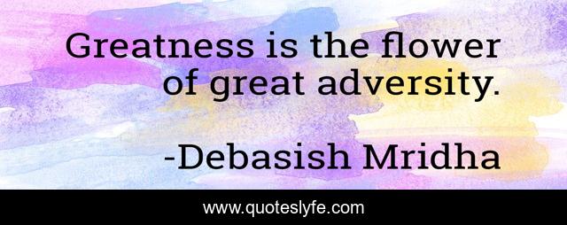 This page presents the quote "Greatness is the flower of great adversity.". Author of this quote is Debasish Mridha. This quote is about great, flower, love, knowledge, inspirational, intelligence, philosophy, life, wisdom,.