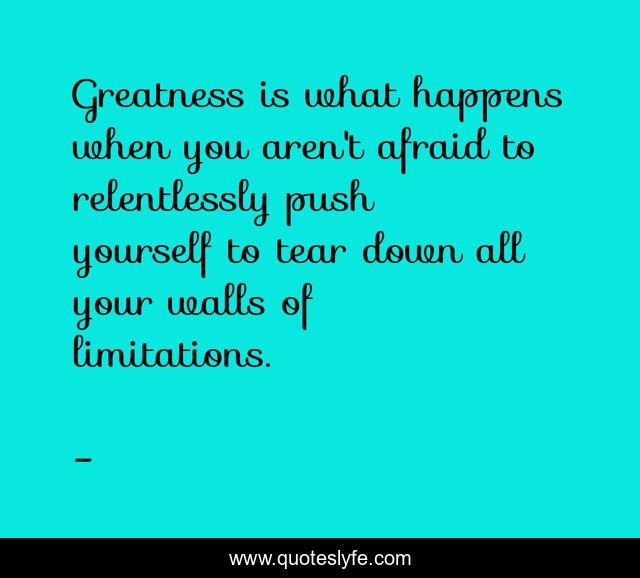 Greatness is what happens when you aren't afraid to relentlessly push yourself to tear down all your walls of limitations.