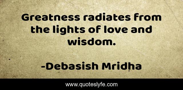 This page presents the quote "Greatness radiates from the lights of love and wisdom.". Author of this quote is Debasish Mridha. This quote is about radiates, debasish, mridha, philosophy, debasish-mridha, wisdom, greatness, lights-of-love,.