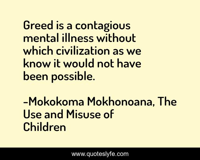 "Mokokoma Mokhonoana, The Use and Misuse of Children Quotes." Quoteslyfe.com, 2025. Mon. 08 Dec. 2025. <https://www.quoteslyfe.com/quote/Greed-is-a-contagious-mental-illness-without-22343>.