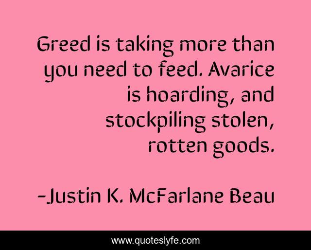 "Justin K. McFarlane Beau Quotes." Quoteslyfe.com, 2025. Sat. 06 Dec. 2025. <https://www.quoteslyfe.com/quote/Greed-is-taking-more-than-you-need-168244>.