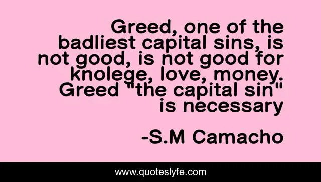 "S.M Camacho Quotes." Quoteslyfe.com, 2025. Fri. 05 Dec. 2025. <https://www.quoteslyfe.com/quote/Greed-one-of-the-badliest-capital-sins-178005>.