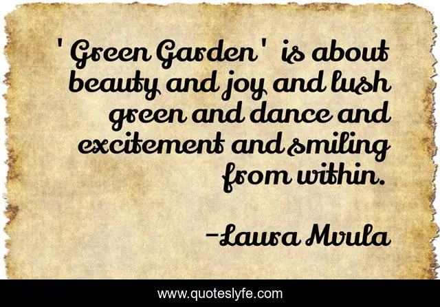 This page presents the quote "'Green Garden' is about beauty and joy and lush green and dance and excitement and smiling from within.". Author of this quote is Laura Mvula. This quote is about dance, joy, smiling,.
