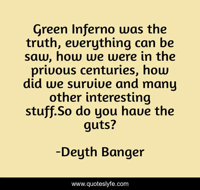 "Deyth Banger Quotes." Quoteslyfe.com, 2025. Fri. 05 Dec. 2025. <https://www.quoteslyfe.com/quote/Green-Inferno-was-the-truth-everything-can-253834>.