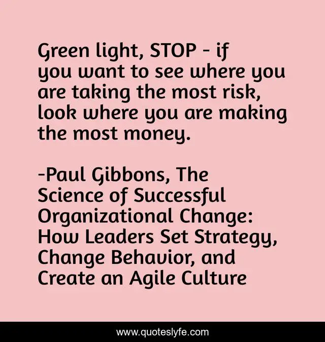 "Paul Gibbons, The Science of Successful Organizational Change: How Leaders Set Strategy, Change Behavior, and Create an Agile Culture Quotes." Quoteslyfe.com, 2025. Fri. 05 Dec. 2025. <https://www.quoteslyfe.com/quote/Green-light-STOP-if-you-want-to-235464>.