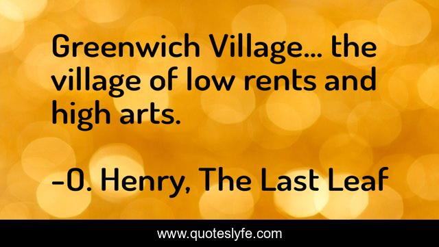 "O. Henry, The Last Leaf Quotes." Quoteslyfe.com, 2025. Mon. 08 Dec. 2025. <https://www.quoteslyfe.com/quote/Greenwich-Village-the-village-of-low-rents-249973>.