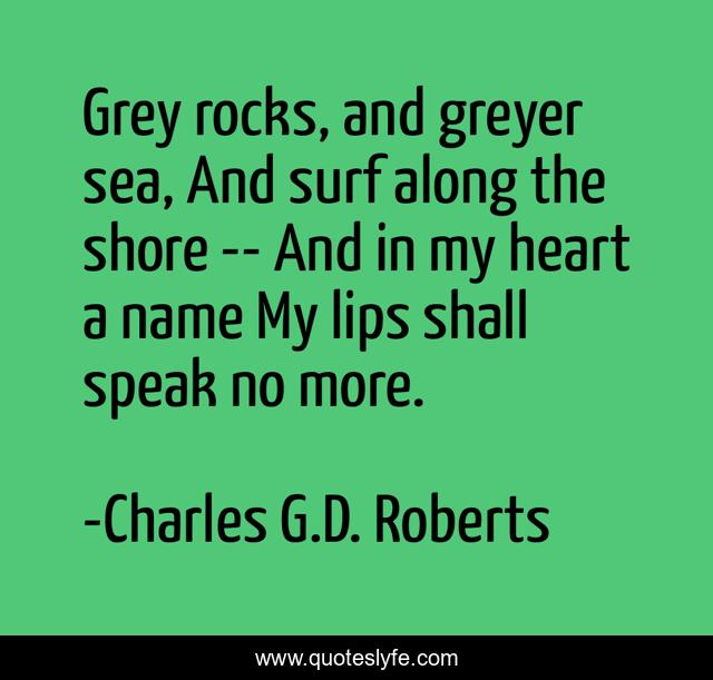 This page presents the quote "Grey rocks, and greyer sea, And surf along the shore -- And in my heart a name My lips shall speak no more.". Author of this quote is Charles G.D. Roberts. This quote is about lonely, kiss, sea, memory,.