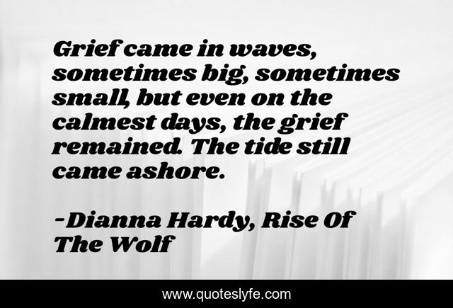 This page presents the quote "Grief came in waves, sometimes big, sometimes small, but even on the calmest days, the grief remained. The tide still came ashore.". Author of this quote is Dianna Hardy, Rise Of The Wolf. This quote is about loss, death, waves-of-grief, sorrow, dealing-with-grief, ocean, grief, time, sea,.