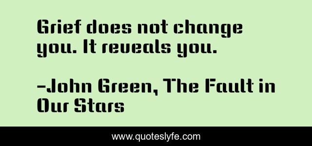 "John Green, The Fault in Our Stars Quotes." Quoteslyfe.com, 2025. Sat. 06 Dec. 2025. <https://www.quoteslyfe.com/quote/Grief-does-not-change-you-It-reveals-123620>.