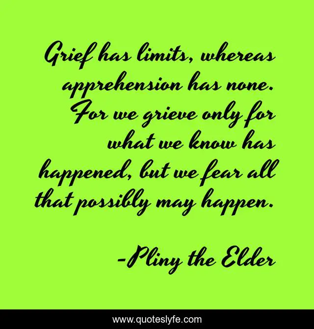 "Pliny the Elder Quotes." Quoteslyfe.com, 2025. Fri. 05 Dec. 2025. <https://www.quoteslyfe.com/quote/Grief-has-limits-whereas-apprehension-has-none-307988>.