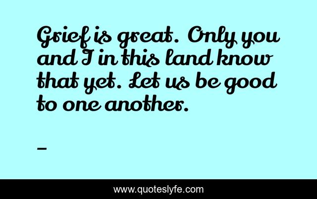 This page presents the quote "Grief is great. Only you and I in this land know that yet. Let us be good to one another.". Author of this quote is . This quote is about grief, narnia, the-magician-s-nephew, c-s-lewis,.