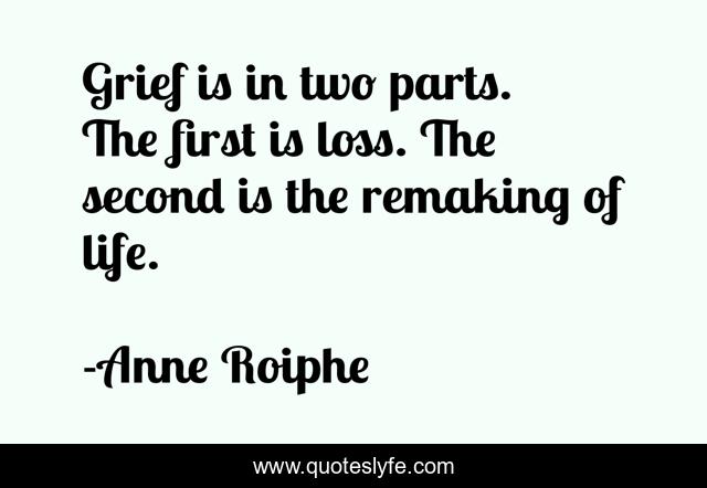 This page presents the quote "Grief is in two parts. The first is loss. The second is the remaking of life.". Author of this quote is Anne Roiphe. This quote is about grief, loss, life,.