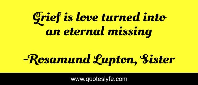 "Rosamund Lupton, Sister Quotes." Quoteslyfe.com, 2025. Mon. 08 Dec. 2025. <https://www.quoteslyfe.com/quote/Grief-is-love-turned-into-an-eternal-20949>.