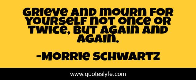This page presents the quote "Grieve and mourn for yourself not once or twice, but again and again.". Author of this quote is Morrie Schwartz. This quote is about twice, mourn, yourself,.