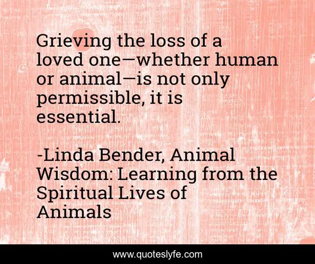 "Linda Bender, Animal Wisdom: Learning from the Spiritual Lives of Animals Quotes." Quoteslyfe.com, 2025. Fri. 05 Dec. 2025. <https://www.quoteslyfe.com/quote/Grieving-the-loss-of-a-loved-one-123624>.