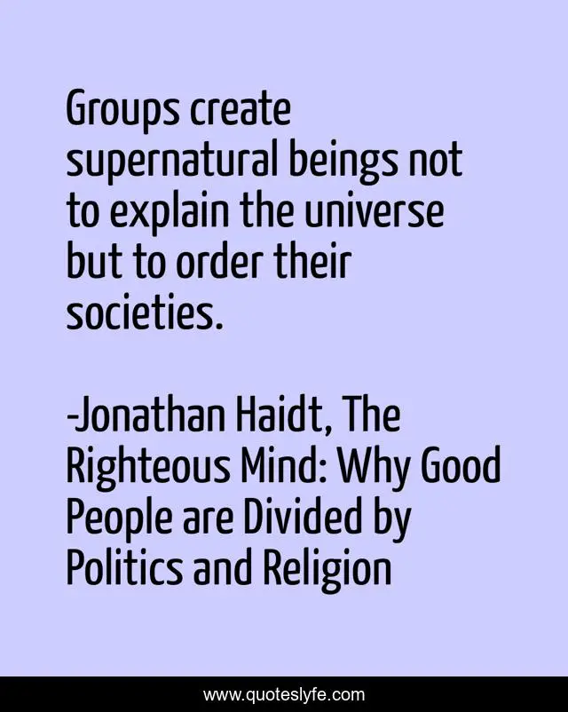 "Jonathan Haidt, The Righteous Mind: Why Good People are Divided by Politics and Religion Quotes." Quoteslyfe.com, 2025. Sat. 13 Dec. 2025. <https://www.quoteslyfe.com/quote/Groups-create-supernatural-beings-not-to-explain-103948>.