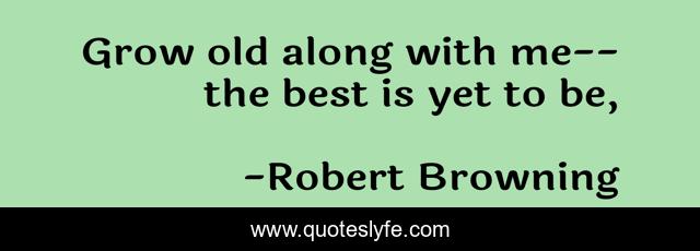 This page presents the quote "Grow old along with me--the best is yet to be, ". Author of this quote is Robert Browning. .