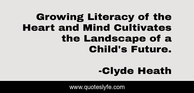 This page presents the quote "Growing Literacy of the Heart and Mind Cultivates the Landscape of a Child's Future.". Author of this quote is Clyde Heath. This quote is about read, child, heath, clyde, books, booker, weeds, literacy,.