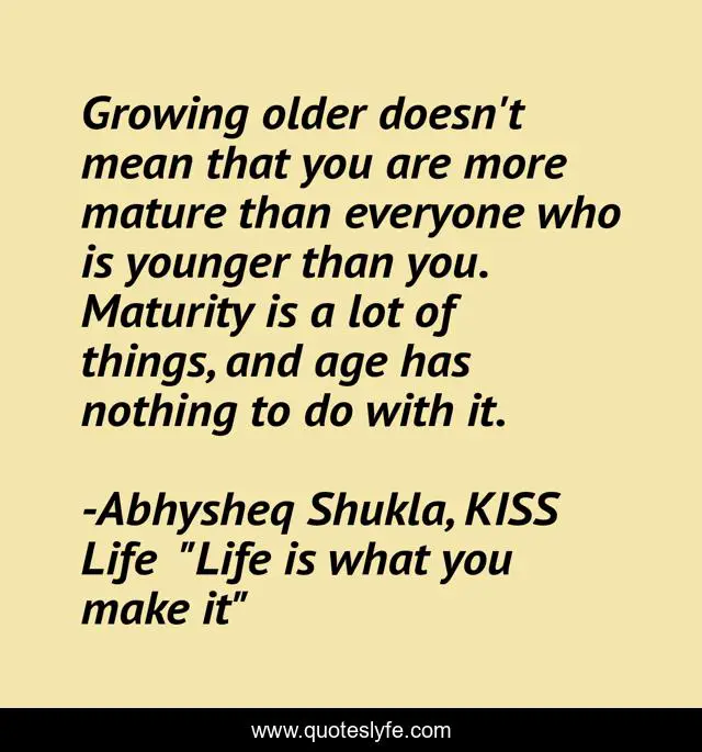 "Abhysheq Shukla, KISS Life "Life is what you make it" Quotes." Quoteslyfe.com, 2025. Mon. 15 Dec. 2025. <https://www.quoteslyfe.com/quote/Growing-older-doesn-t-mean-that-you-34597>.