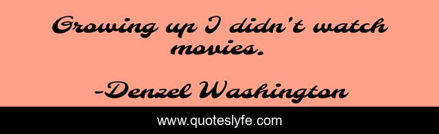 This page presents the quote "Growing up I didn't watch movies.". Author of this quote is Denzel Washington. This quote is about growing, growing up, watch,.
