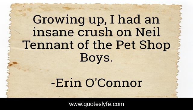 This page presents the quote "Growing up, I had an insane crush on Neil Tennant of the Pet Shop Boys.". Author of this quote is Erin O'Connor. This quote is about crush, insane, growing up,.