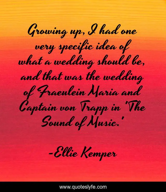 This page presents the quote "Growing up, I had one very specific idea of what a wedding should be, and that was the wedding of Fraeulein Maria and Captain von Trapp in 'The Sound of Music.'". Author of this quote is Ellie Kemper. This quote is about music, captain, growing up,.