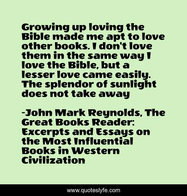 "John Mark Reynolds, The Great Books Reader: Excerpts and Essays on the Most Influential Books in Western Civilization Quotes." Quoteslyfe.com, 2025. Fri. 05 Dec. 2025. <https://www.quoteslyfe.com/quote/Growing-up-loving-the-Bible-made-me-169436>.