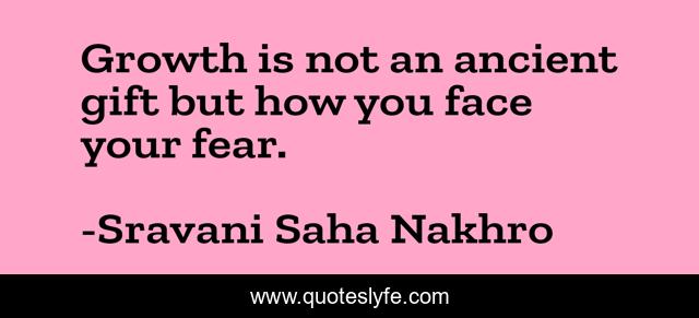 This page presents the quote "Growth is not an ancient gift but how you face your fear.". Author of this quote is Sravani Saha Nakhro. .