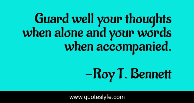 This page presents the quote "Guard well your thoughts when alone and your words when accompanied.". Author of this quote is Roy T. Bennett. This quote is about inspire, optimistic, inspirational-life, life-and-living, living, inspiring, positive, positive-thinking, words-of-wisdom,.