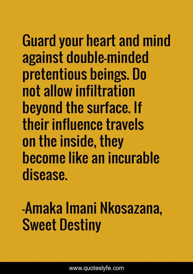 "Amaka Imani Nkosazana, Sweet Destiny Quotes." Quoteslyfe.com, 2025. Sun. 07 Dec. 2025. <https://www.quoteslyfe.com/quote/Guard-your-heart-and-mind-against-double-81646>.