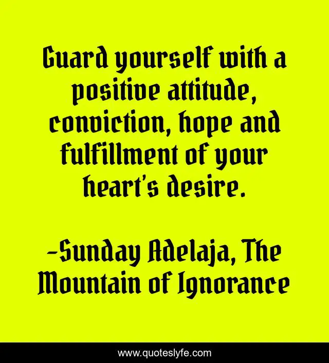 "Sunday Adelaja, The Mountain of Ignorance Quotes." Quoteslyfe.com, 2025. Sat. 06 Dec. 2025. <https://www.quoteslyfe.com/quote/Guard-yourself-with-a-positive-attitude-conviction-19890>.