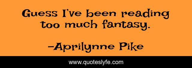 This page presents the quote "Guess I’ve been reading too much fantasy.". Author of this quote is Aprilynne Pike. This quote is about fantasy, reading,.