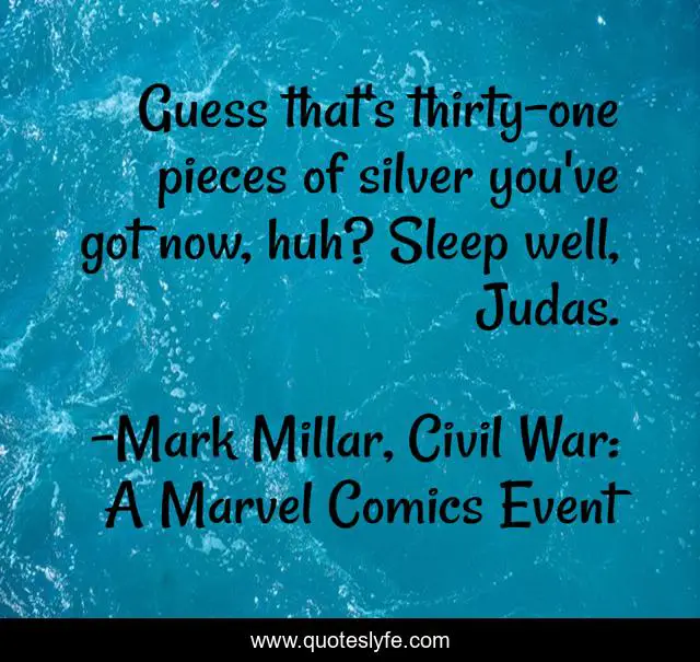 "Mark Millar, Civil War: A Marvel Comics Event Quotes." Quoteslyfe.com, 2025. Mon. 08 Dec. 2025. <https://www.quoteslyfe.com/quote/Guess-that-s-thirty-one-pieces-of-216540>.