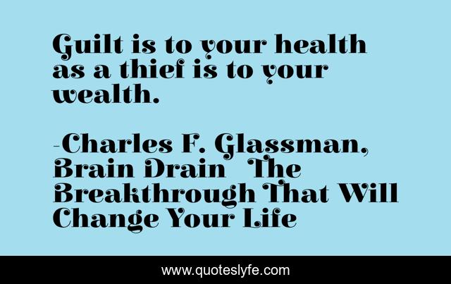 This page presents the quote "Guilt is to your health as a thief is to your wealth.". Author of this quote is Charles F. Glassman, Brain Drain The Breakthrough That Will Change Your Life. This quote is about spiritual, positive-motivation, guilt, positive, motivational, confidence, health, optimistic, inspirational,.