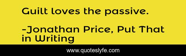 This page presents the quote "Guilt loves the passive.". Author of this quote is Jonathan Price, Put That in Writing. This quote is about passive, guilt,.