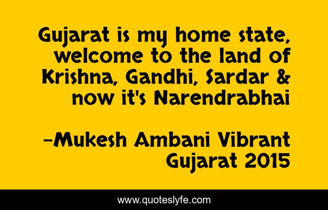 "Mukesh Ambani Vibrant Gujarat 2015 Quotes." Quoteslyfe.com, 2025. Sat. 06 Dec. 2025. <https://www.quoteslyfe.com/quote/Gujarat-is-my-home-state-welcome-to-250418>.