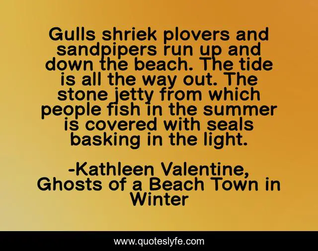 "Kathleen Valentine, Ghosts of a Beach Town in Winter Quotes." Quoteslyfe.com, 2025. Sat. 06 Dec. 2025. <https://www.quoteslyfe.com/quote/Gulls-shriek-plovers-and-sandpipers-run-up-72792>.