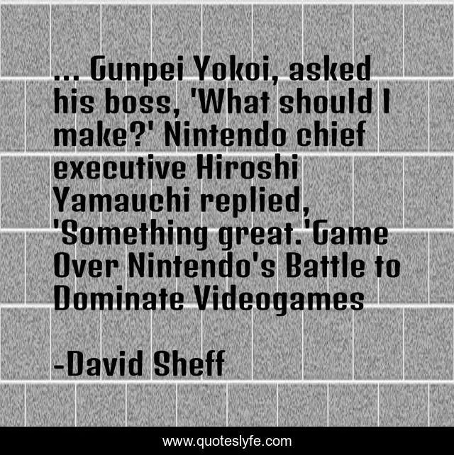 "David Sheff Quotes." Quoteslyfe.com, 2025. Fri. 05 Dec. 2025. <https://www.quoteslyfe.com/quote/Gunpei-Yokoi-asked-his-boss-What-should-36213>.