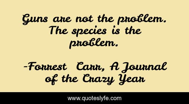 "Forrest Carr, A Journal of the Crazy Year Quotes." Quoteslyfe.com, 2025. Sat. 06 Dec. 2025. <https://www.quoteslyfe.com/quote/Guns-are-not-the-problem-The-species-157356>.