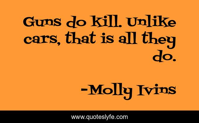 "Molly Ivins Quotes." Quoteslyfe.com, 2025. Sat. 06 Dec. 2025. <https://www.quoteslyfe.com/quote/Guns-do-kill-Unlike-cars-that-is-323154>.