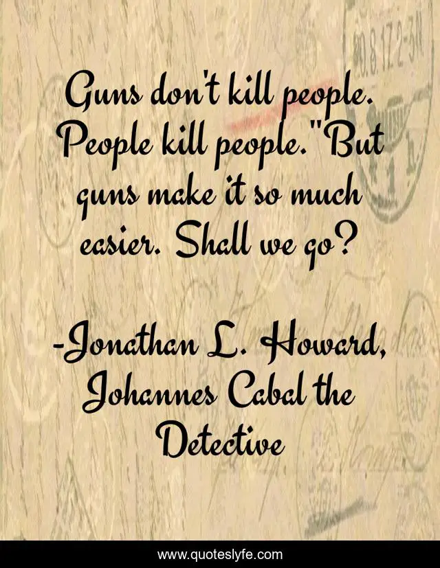 "Jonathan L. Howard, Johannes Cabal the Detective Quotes." Quoteslyfe.com, 2025. Tue. 09 Dec. 2025. <https://www.quoteslyfe.com/quote/Guns-don-t-kill-people-People-kill-71647>.