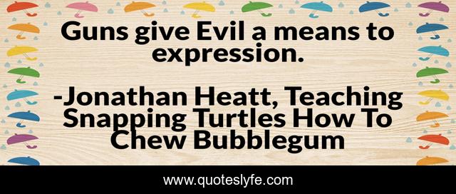 "Jonathan Heatt, Teaching Snapping Turtles How To Chew Bubblegum Quotes." Quoteslyfe.com, 2025. Fri. 05 Dec. 2025. <https://www.quoteslyfe.com/quote/Guns-give-Evil-a-means-to-expression-154336>.