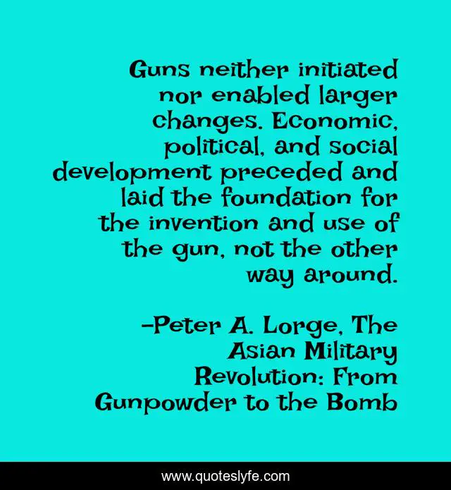 "Peter A. Lorge, The Asian Military Revolution: From Gunpowder to the Bomb Quotes." Quoteslyfe.com, 2025. Fri. 05 Dec. 2025. <https://www.quoteslyfe.com/quote/Guns-neither-initiated-nor-enabled-larger-changes-57354>.