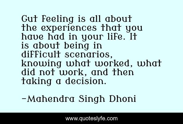"Mahendra Singh Dhoni Quotes." Quoteslyfe.com, 2025. Sun. 07 Dec. 2025. <https://www.quoteslyfe.com/quote/Gut-feeling-is-all-about-the-experiences-291061>.