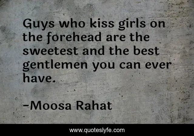 This page presents the quote "Guys who kiss girls on the forehead are the sweetest and the best gentlemen you can ever have.". Author of this quote is Moosa Rahat. This quote is about forehead, gentlemen, girls, kiss, sweetest,.