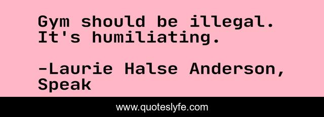 "Laurie Halse Anderson, Speak Quotes." Quoteslyfe.com, 2025. Sun. 07 Dec. 2025. <https://www.quoteslyfe.com/quote/Gym-should-be-illegal-It-s-humiliating-5816>.
