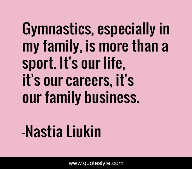 This page presents the quote "Gymnastics, especially in my family, is more than a sport. It's our life, it's our careers, it's our family business.". Author of this quote is Nastia Liukin. This quote is about life, family,.