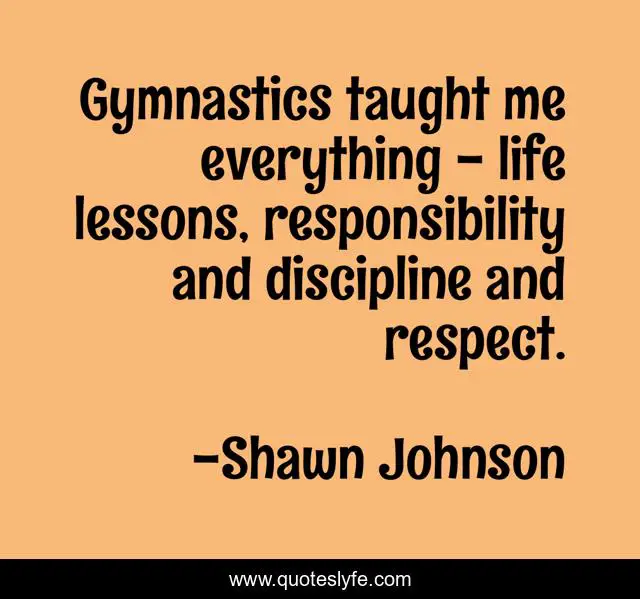 This page presents the quote "Gymnastics taught me everything - life lessons, responsibility and discipline and respect.". Author of this quote is Shawn Johnson. This quote is about me, life, responsibility,.
