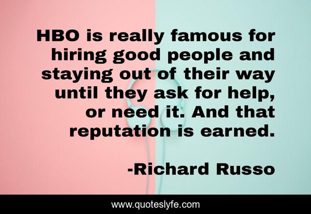 This page presents the quote "HBO is really famous for hiring good people and staying out of their way until they ask for help, or need it. And that reputation is earned.". Author of this quote is Richard Russo. This quote is about good, help, good people,.