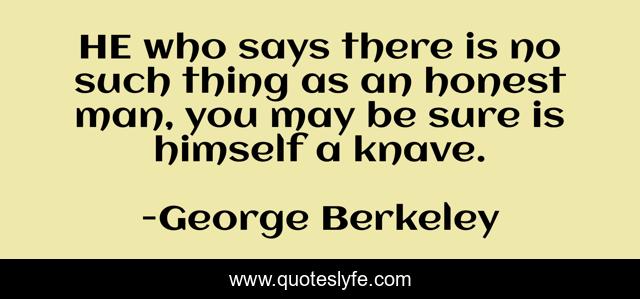 This page presents the quote "HE who says there is no such thing as an honest man, you may be sure is himself a knave.". Author of this quote is George Berkeley. This quote is about honesty, liars,.